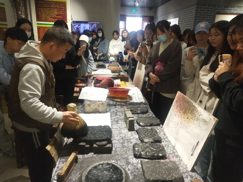 王洛平老师在朱仙镇示范木刻版画制作工艺