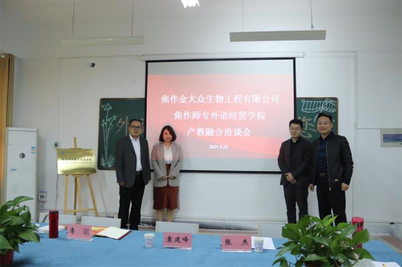 金大众生物工程有限公司为全国专业生产活性肽及动物保健品的知名企业,在行业内享有较高的知名度,会上,三方就人才培养方向,项目合作模式 www.91,培训内容以及后期新项目的引入方面进行了详细的磋商,并达成了共建“教师企业流动工作站”,共建“高水平校外实践教学基地”等项目的初步意向。