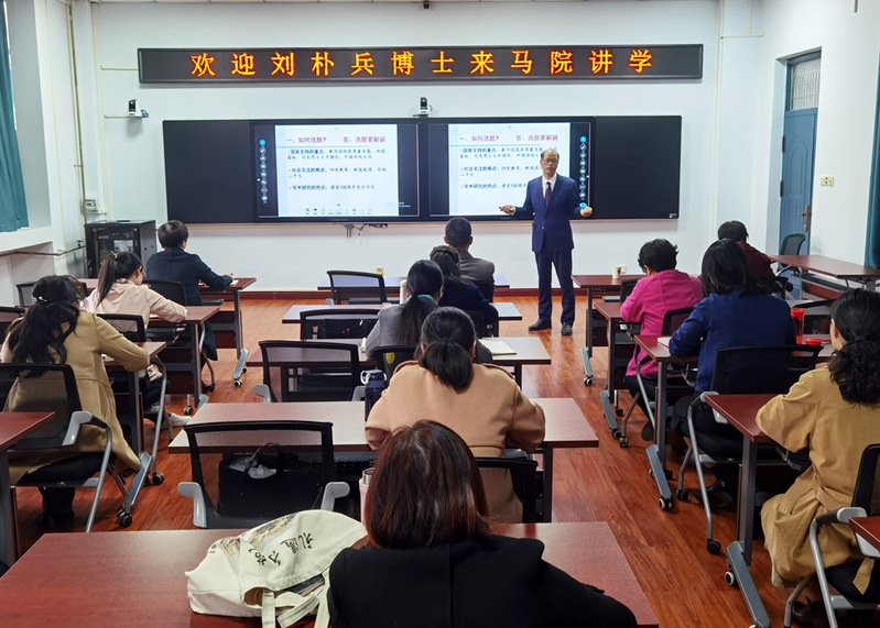 10月25日下午 www.91视频.com,我院邀请我校科研处刘朴兵博士到1教411智慧教室作了题为“如何结合马院实际做好科研”的学术讲座,马院全体教师及兄弟91黑料吃瓜在线观看的部分教师参加了讲座,此次讲座由我院副院长秦红梅主持。