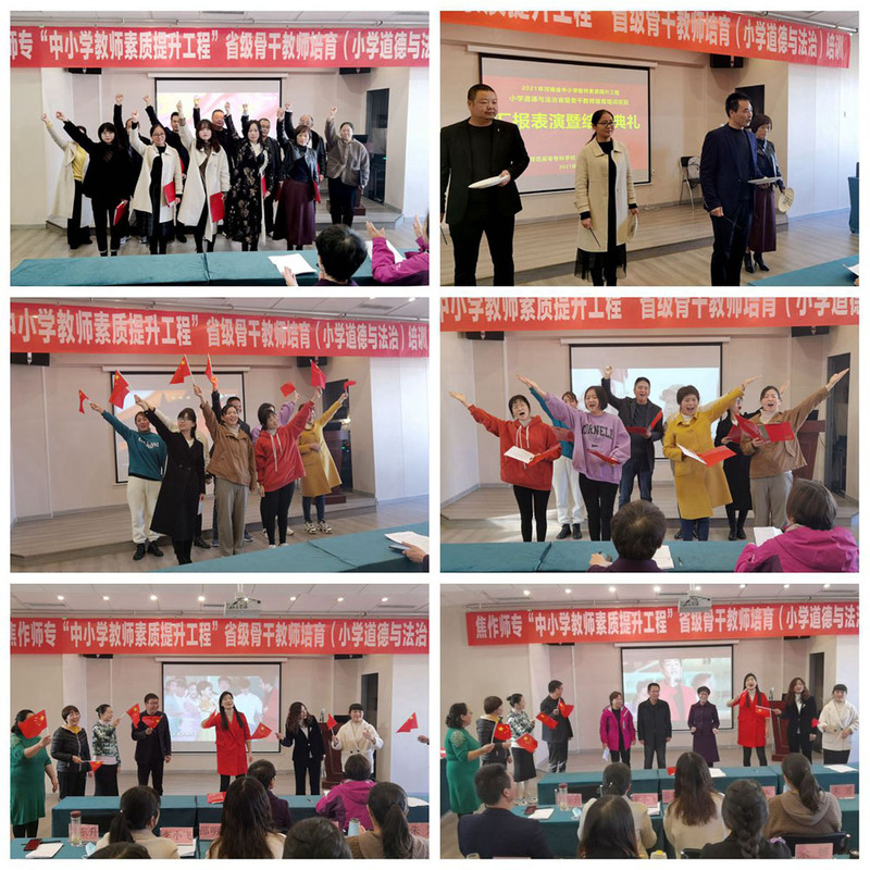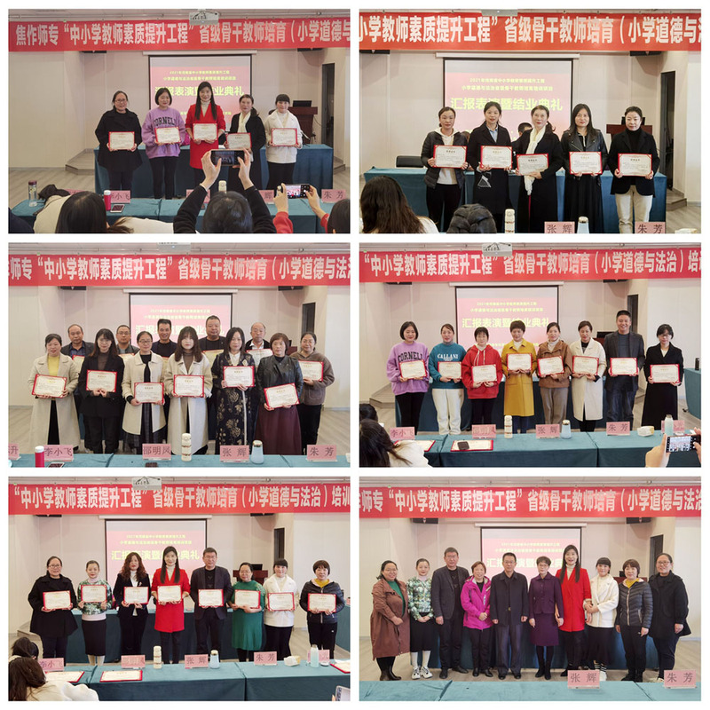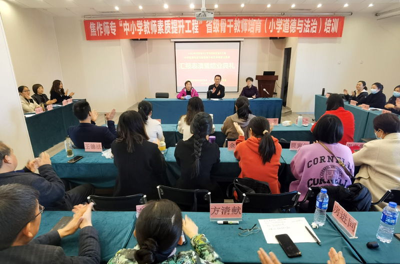 11月16日上午,我校在焦作市凯悦大酒店报告厅举行了“河南省小学道德与法治省级骨干教师培育培训项目”汇报展示暨结业典礼,马克思主义91黑料吃瓜在线观看党政班子,担任本期培训的班主任及全体学员参加了此次典礼 www.91视频.com。