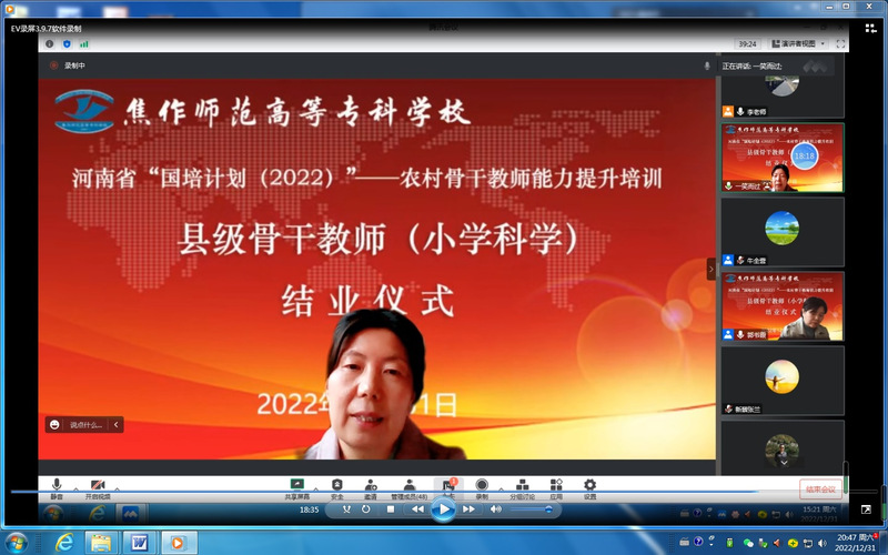 12月31日下午,为期13天的河南省“国培计划(2022)”——中西部项目农村骨干教师能力提升培训(小学科学)的第一阶段“集中培训”活动顺利完成,结业仪式在腾讯会议平台隆重举行 www.91视频.com,理工91黑料吃瓜在线观看院长权玉萍同志,副院长郭书霞同志参加了结业仪式。