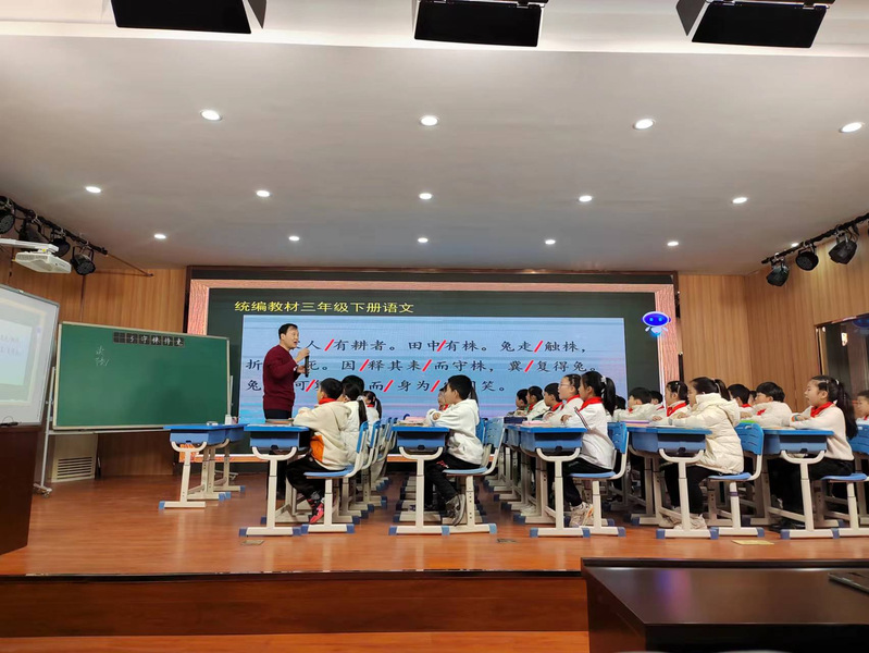 2023年2月12日下午2:30 www.91视频.com,特级教师郑勇在焦东路小学报告厅为尉氏县骨干教师培训项目(小学语文)培训班学员讲授观摩课《守株待兔》。