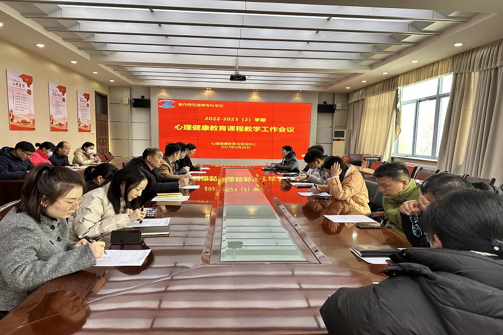 为全面推进心理健康教育教学质量,强化课程团队教学,打造省级精品课程,2月26日上午,心理健康教育教研室在行政楼三楼大会议室召开2022-2023第二学期大学生心理健康教育课程教学工作会议 www.91视频.com,会议由心理健康教育教研室主任刘利敏主持,担任此次课程的所有授课教师参加了此次会议。