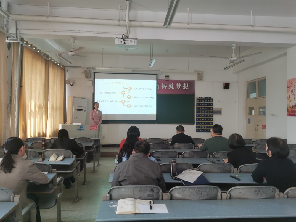 会上,参加2022年下半年社会实践锻炼的张宛琳,柴丹丹,孙颖丽,康亚莉,郭永昌等五位老师,分别通过PPT的形式 www.91,报告了各自在实践锻炼期间的工作情况和收获体会,考核领导小组成员现场对五位老师的实践锻炼情况进行了评议打分。