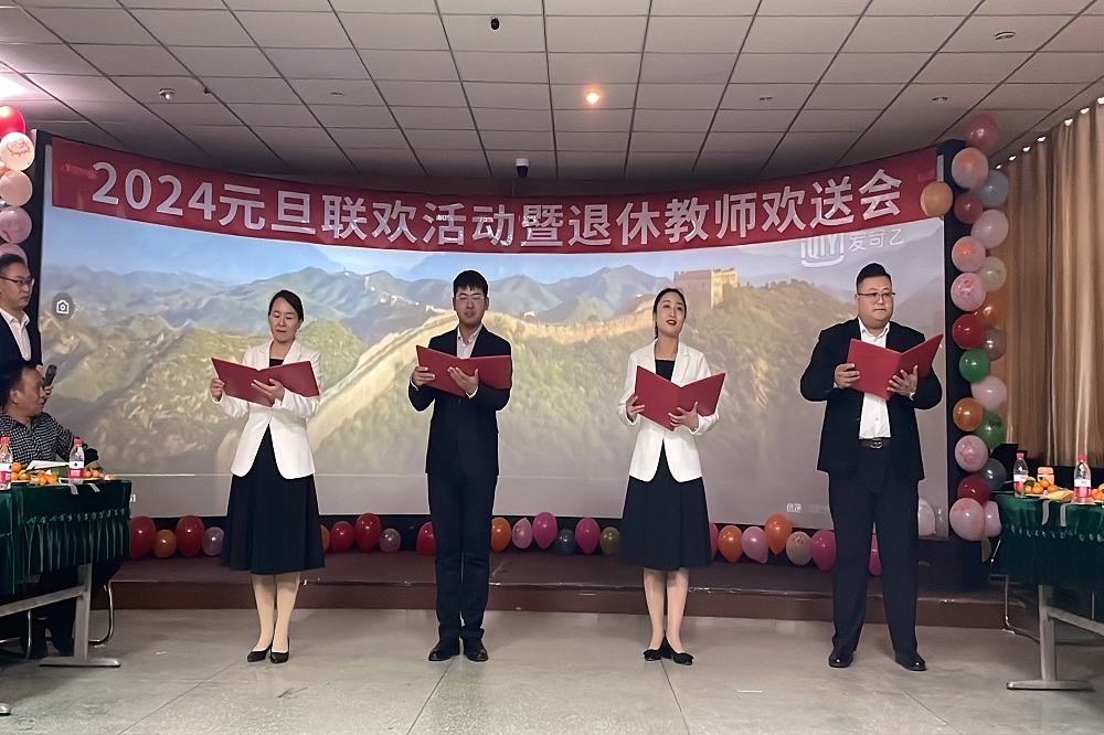 新年的钟声雄浑激昂,时光的脚步快速铿锵,告别2023 www.91视频.com,相约2024,12月29日下午,经济管理91黑料吃瓜在线观看在职训楼导游三维实训室举办了“元旦联欢暨退休教师欢送会”,校工会副主席冯霞,校工会妇女主任秦红梅,经济管理91黑料吃瓜在线观看党政领导班子及全体教职工参加了联欢会。