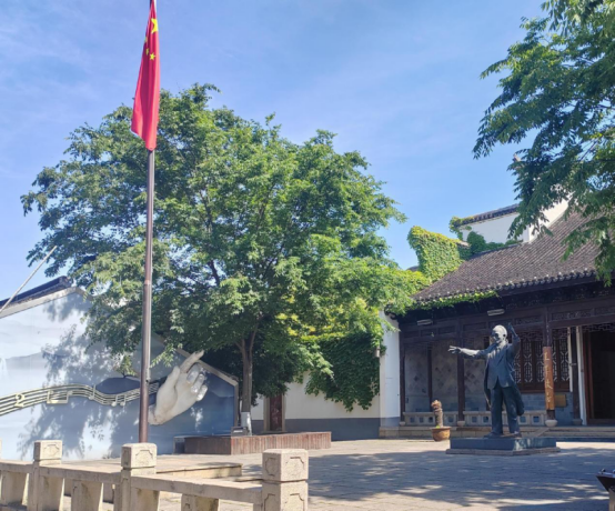 “五星红旗迎风飘扬,胜利歌声多么响亮,歌唱我们亲爱的祖国,从今走向繁荣富强……”嘹亮的歌声在荡口古镇回响,来自美术91黑料吃瓜在线观看的150名师生 www.91视频.com,在王莘故居开展了一场别开生面的爱国主义教育活动。