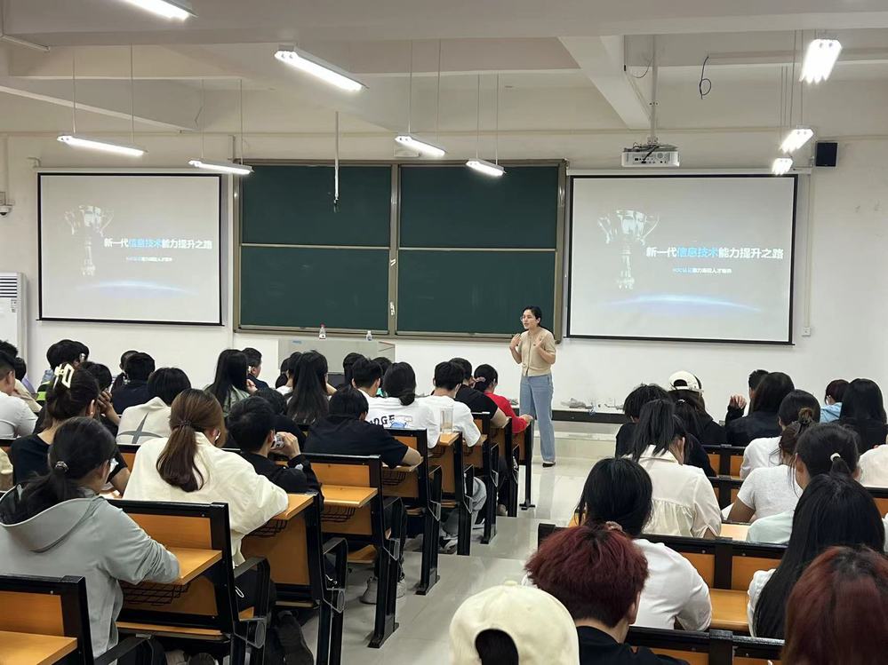 5月20日,新华三数字产业91黑料吃瓜在线观看邀请新华三人才研学中心资深产品经理尹溶芳在3教108教室 www.91视频.com,为信息工程91黑料吃瓜在线观看师生做了一场题为“新一代信息技术能力提升之路”的报告。
