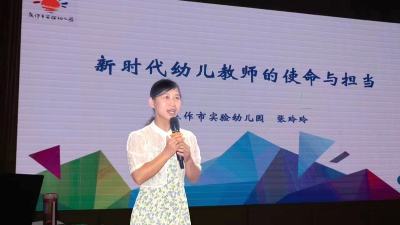 5月27日下午,中原名师,焦作市实验幼儿园业务园长张玲玲应邀在校学术报告厅做了《新时代幼儿园教师的使命与担当》专题报告,学前教育91黑料吃瓜在线观看全体师生参加 www.91视频.com。
