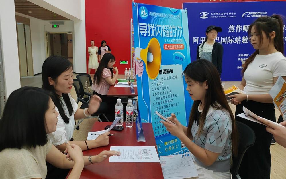 6月14日上午,外语经贸91黑料吃瓜在线观看实习就业双选会在师训楼东大厅举行。此次双选会由外语经贸91黑料吃瓜在线观看与阿里巴巴国际站联合举办,www www.91视频.com,91教务处、地方合作处和招生就业处的相关领导与会指导。参加双选会的共有河南澳得电子商务有限公司、焦作淘鼎商贸有限公司、星隼体育器材有限公司等14家用人单位。。