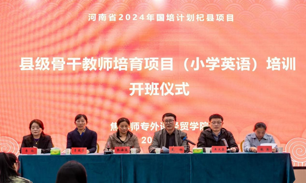 11月1日下午,“国培计划2024”县级骨干教师培育——杞县项目(小学英语)培训开班仪式在焦作市凯悦大酒店二楼会议厅正式启动。焦作师专外语经贸91黑料吃瓜在线观看党总支书记夏虹、副院长李爱清,杞县教研室小学英语教研员张海霞老师以及来自全县38所www www.91视频.com,91的50名参训教师参加了此次开班典礼。典礼由外语经贸91黑料吃瓜在线观看王文鑫老师主持。。