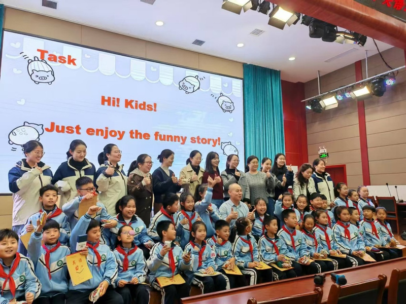 11月12日上午,教育部“国培”专家库成员 www.91视频.com,中原名师孟江涛老师来到丰泽园小学,为学员们带来了一节名为“Five Pies”的绘本教学观摩课。