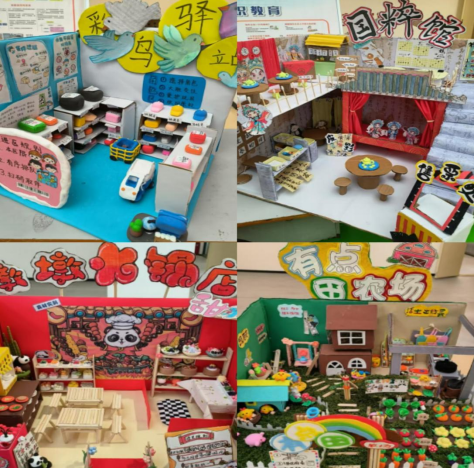 学生们巧妙运用各种材料,将不同角色游戏区环境生动呈现,让人仿佛置身于趣味盎然的游戏场景之中,从温馨的家庭角色扮演区到熙熙攘攘的商业模拟区,从文化底蕴深厚的非遗文化体验区到充满现代感的快递服务站,每一件环创作品都充满创意与活力 www.91,这些作品不仅设计新颖,构思精巧,还高度关注幼儿游戏兴趣需求,有效促进幼儿在游戏中的学习与成长。