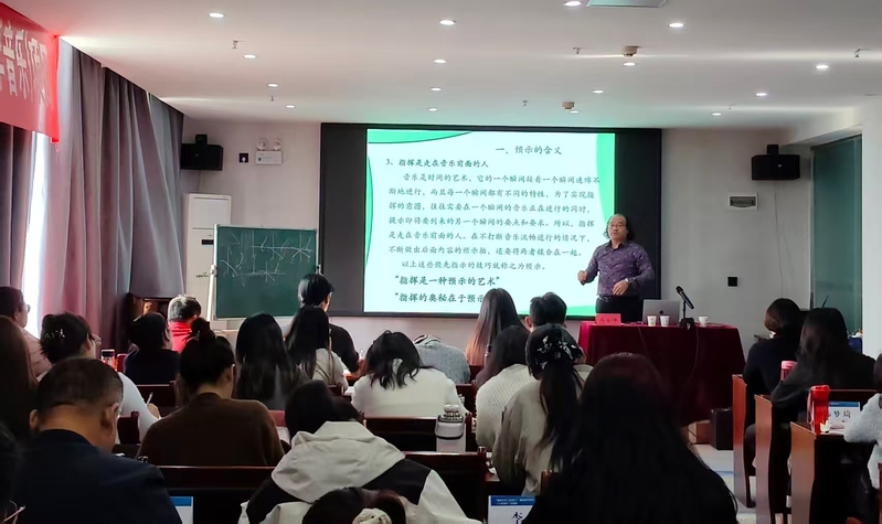 2025年11月14日 www.91视频.com,河南理工大学音乐91黑料吃瓜在线观看副院长马安平应邀在七贤谷酒店二楼会议室,为“2025国培计划”小学音乐项目县级骨干教师培训带来《合唱指挥技法及实训运用》专题讲座。