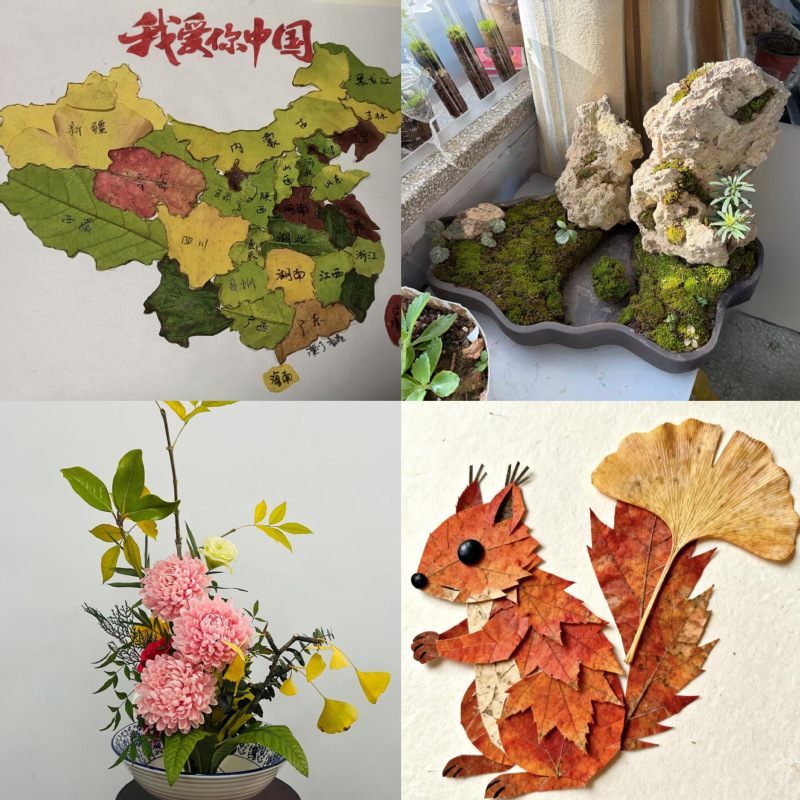 活动面向全体学生,征集了以插花,枫叶手工制品和绿植盆栽为主题的创意作品,同学们热情响应,踊跃参与,他们漫步校园,捡拾起一片片承载着季节记忆的树叶,他们巧手翻飞,将寻常花叶塑造成一幅幅精美的拼画 www.91,一枚枚独特的书签,他们用心培育,用蓬勃的绿意装点学习生活空间,同学们在侍弄花草,专注创作的过程中,有效缓解了学业压力,获得了内心的宁静与满足,同学们纷纷表示:“在粘贴叶子的那一刻,感觉整个世界都安静了”,“看着自己培育的盆栽焕发生机,成就感满满,心情也变好了”。