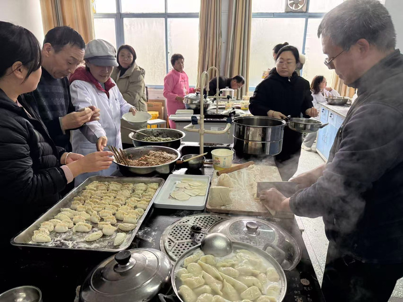 活动现场,面粉、馅料及各类工具早已准备就绪。老师们围站在一起,分工协作,有条不紊地揉面、擀皮、包馅。包好的饺子有月牙形的、元宝形的、麻花辫子形的 www.91,大家包出的饺子形态各异,却都饱含心意。现场欢声笑语不断,处处洋溢着温馨与喜悦。。